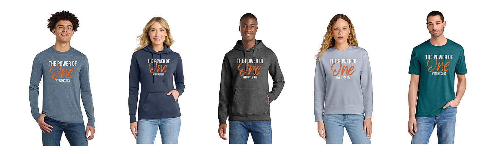 The WyoGives store is now open, featuring designs inspired by the 2026 theme, The Power of One, a reminder that every action, every donor, and every gift helps build stronger communities across Wyoming.